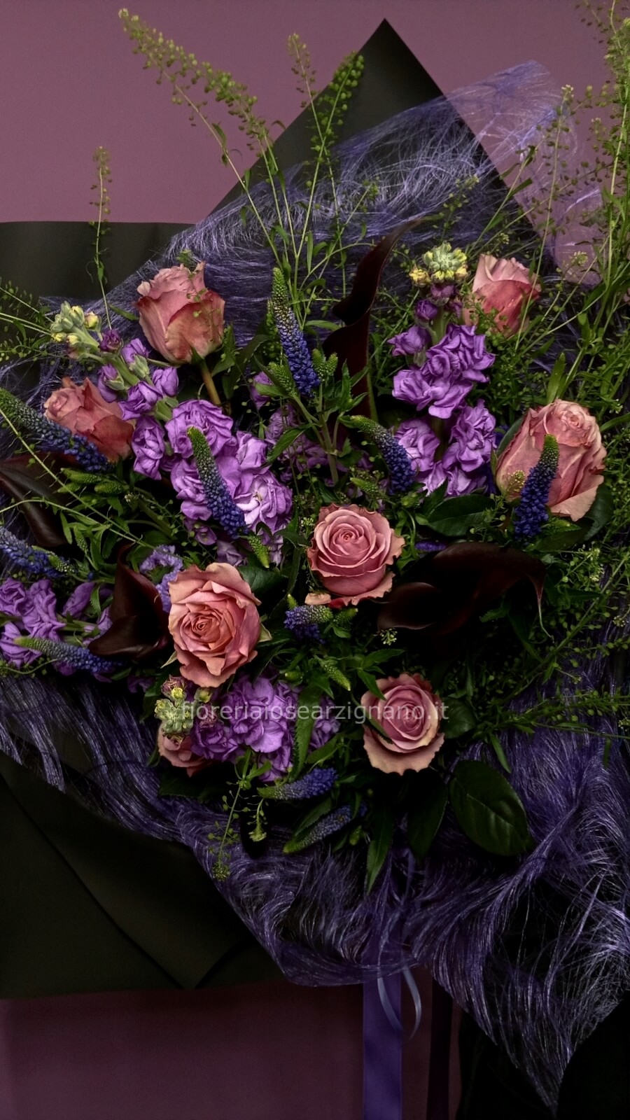 Un design floreale AUDACE E OSCURO per i momenti che meritano un tocco di UNICITA'. Il bouquet NOTTURNO è realizzato con fiori stagionali di alta qualità in una palette di colori misti sui toni del cielo— ideale per stupire !