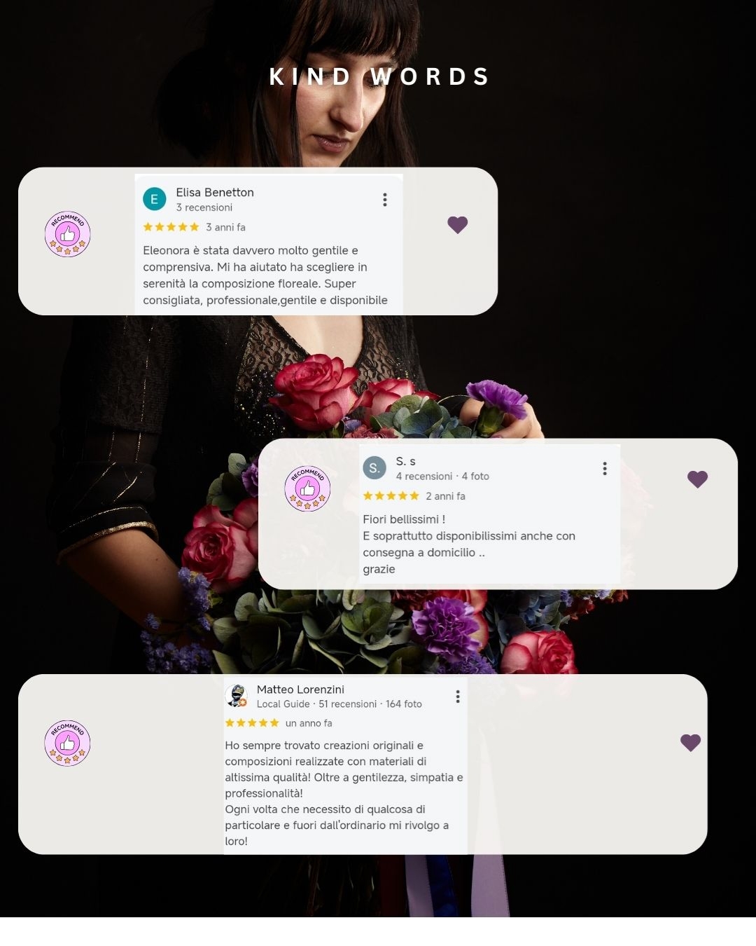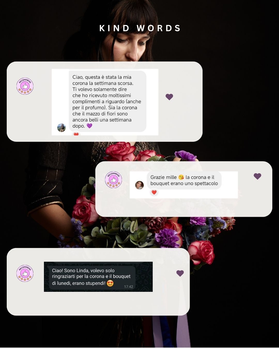 Le parole dei miei clienti raccontano la magia che vivono grazie a Fioreria Iose.